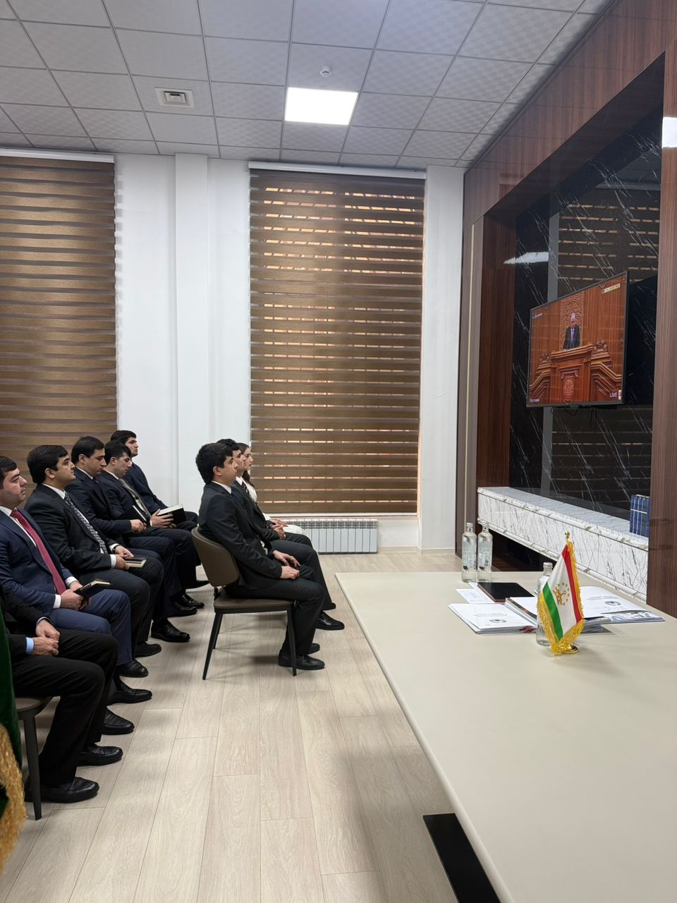 Тамошои дастаҷамъонаи ироаи Паёми Президенти Ҷумҳурии Тоҷикистон “Дар бораи самтҳои асосии сиёсати дохилию хориҷии Ҷумҳурии Тоҷикистон” ба Маҷлиси Олии Ҷумҳурии Тоҷикистон аз ҷониби кормандони Раёсати сармоягузорӣ ва идораи молу мулки давлатии шаҳри Душанбе.